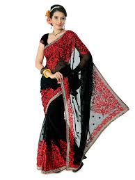 Similar styles of the saree are recorded paintings by Raja Ravi Varma in Kerala. By the mid 19th century, though, bare breasted styles of the sari faced social revaluation and led to the Upper cloth controversy in the princely state of Travancore (now part of the state of Kerala) and the styles declined rapidly within the next half a century. Red wedding saris are the traditional garment choice for brides in Indian culture. Sari fabric is also traditionally silk. Over time, colour options and fabric choices for Indian brides have expanded. Today fabrics like crepe, Georgette, charmeuse, and satin are used, and colors have been expanded to include gold, pink, orange, maroon, brown, and yellow as well. Indian brides in Western countries often wear the sari at the wedding ceremony and change into traditional Indian wear afterwards (lehnga, choli, etc.). Some images of maharanis in the Deccan show the women wearing a sleeveless, richly embellished waistcoat over their blouses. The Begum of Savanur remembers how sumptuous the chiffon sari became at their gatherings. At some courts it was worn with jaali, or net kurtas and embossed silk waist length sadris or jackets. Some of them were so rich that the entire ground was embroidered over with pearls and zardozi. An air hostess style sari is tied in just the same way as a normal sari except that the pleats are held together quite nicely with the help of pins. A bordered sari will be just perfect for an Air-Hostess style drape where the pallu is heavily pleated and pinned on the shoulder. Even the vertical pleats that are tucked at the navel are severely pleated and pressed. Same goes for the pallu pleats that are pinned at the shoulder.